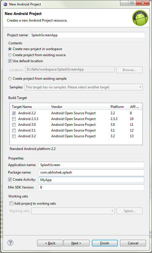 Create a new project in Eclipse named AnimatedSplashScreen