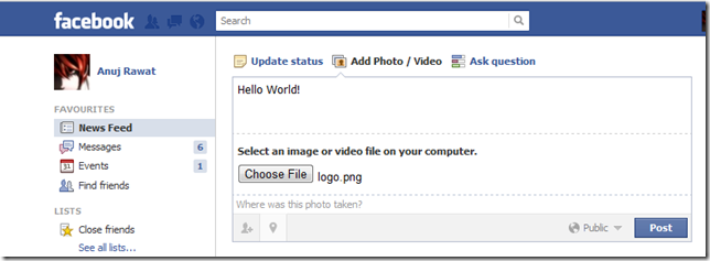 Technorati Tags: facebook,comment,photo,image hosting,trick,tips Post something and place an image!
