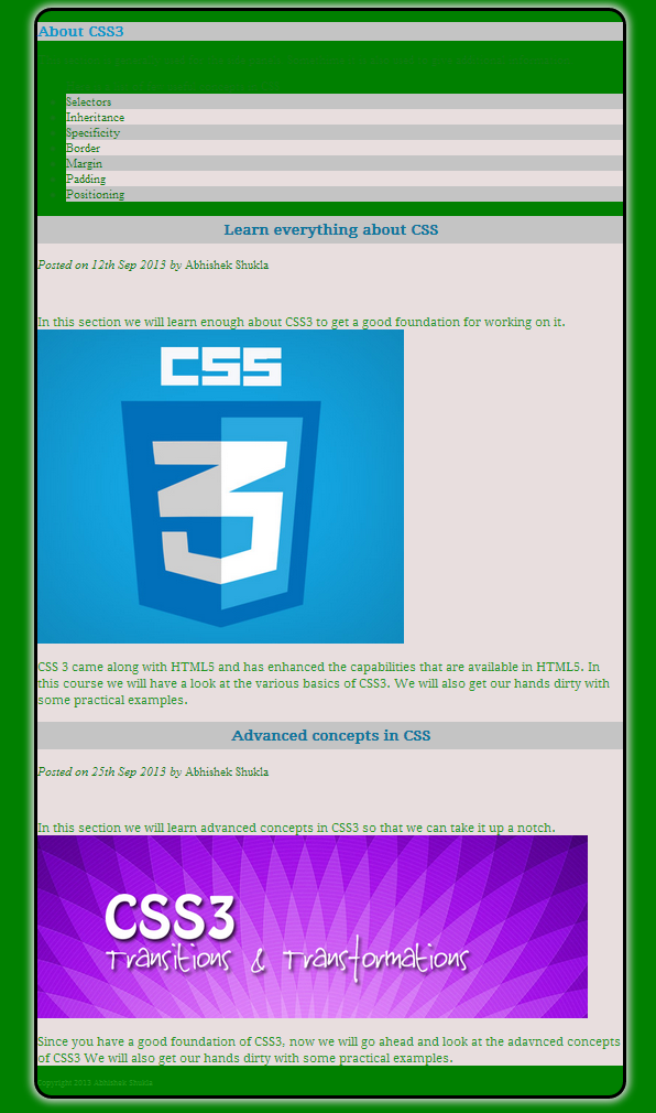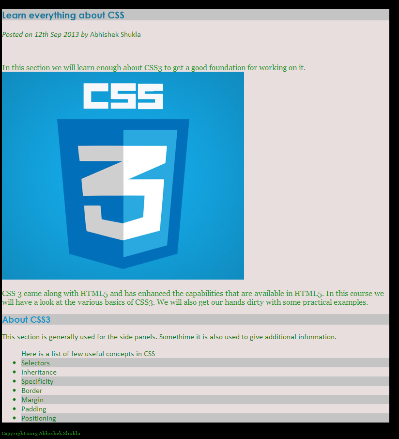 In this post we will be covering the basic concepts in CSS3 along with some hands on examples. The topics that we will cover in this post are: